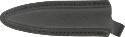 9 1/8" overall. 4 7/8" black finish stainless double edge blade. Black rubberized handle with lanyard hole. Black leather belt/boot clip sheath.