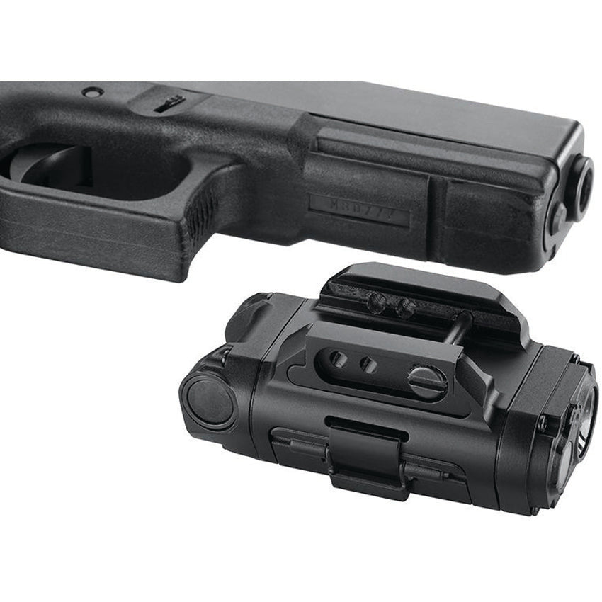 Waterproof. Fits railed pistols. 5mW green laser sight. 1080p HD video. 500 lumen LED light. Mini USB port and indicator lights for onboard charging. Integrated microphone. Instant-On technology. Fits most holsters designed for the Streamlight TLR1. Software is PC compatible only. Boxed.