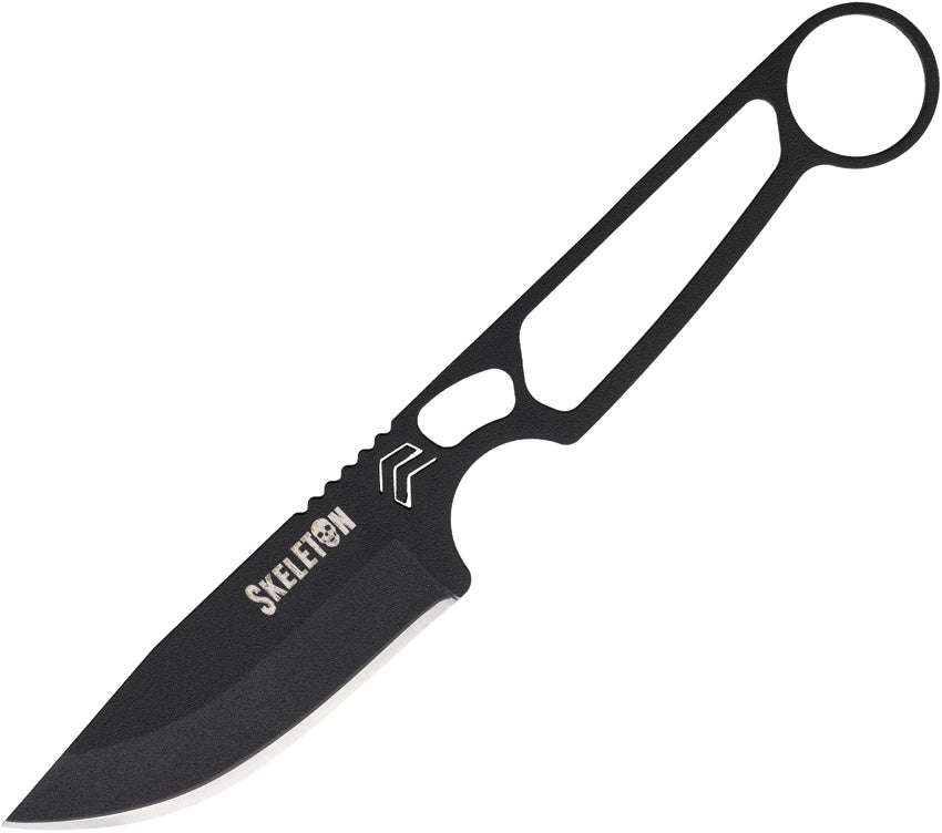 7.38" (18.75cm) overall. 3" (7.62cm) black coated high carbon stainless blade. One-piece construction. Brown leather belt sheath. Clam packed.