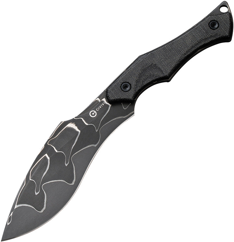 6.25" (15.88cm) overall. 3.25" (8.26cm) Damascus steel blade. Black canvas micarta handle. Full, extended tang. Lanyard hole. Ball chain lanyard. Black Kydex neck sheath. Boxed.