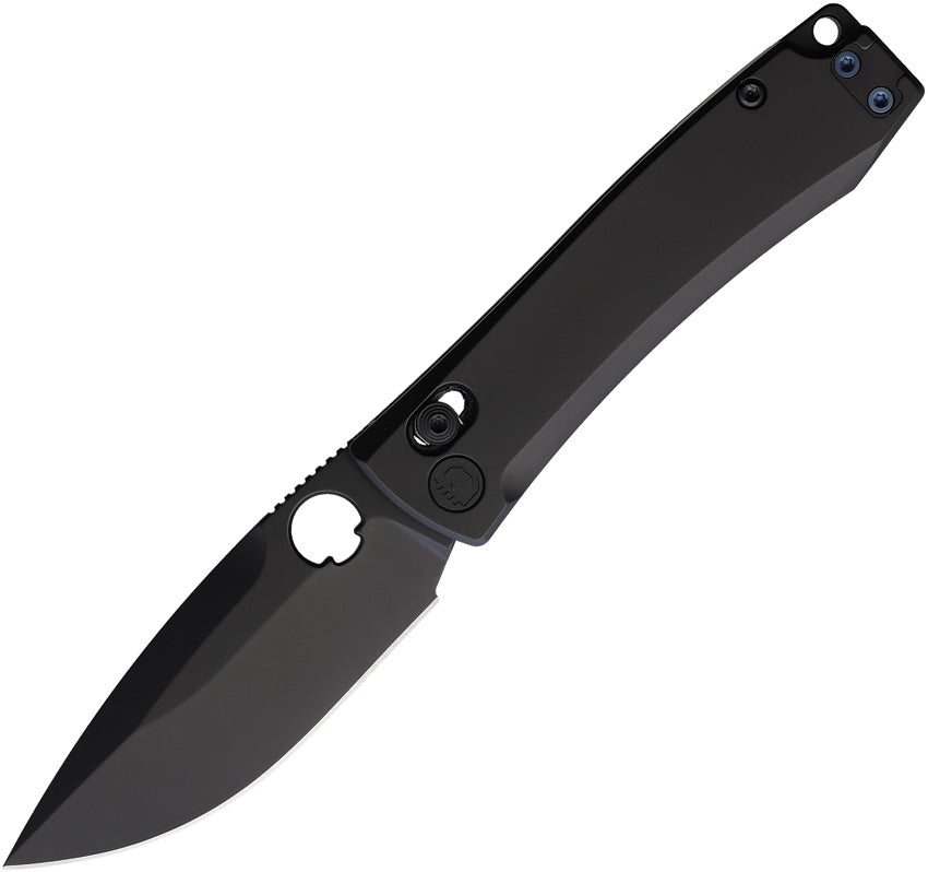 3.75" (9.53cm) closed. 3" (7.62cm) black finish MagnaCut steel drop point blade. Black titanium handle. Lanyard hole. Pocket clip. Thumb pull. Black nylon zippered storage case. Boxed.