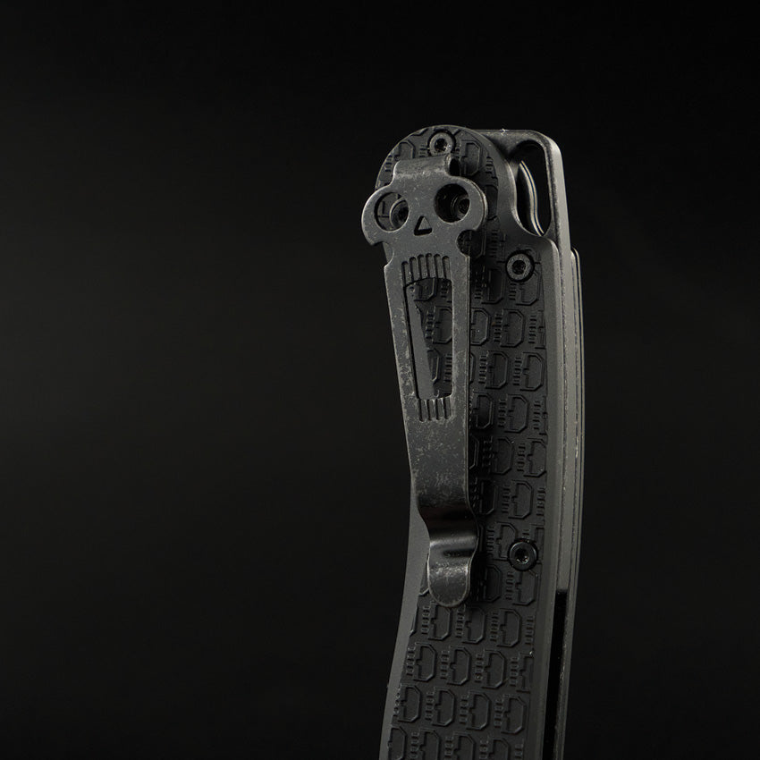 5.88" (14.94cm) closed. 4.88" (12.4cm) black stonewash finish 8Cr14MoV stainless clip point blade. Black textured FRN handle. Extended tang. Lanyard hole. Pocket clip. Boxed.