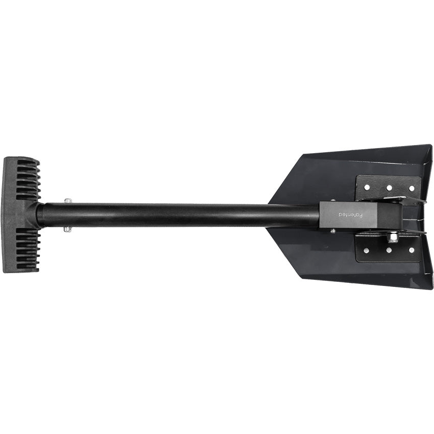 Pack size: 19" x 7" x 1.5". Weight: 3.4lb. 33" extended and height adjustable to 24". 14 gauge cold rolled carbon steel shovel blade and brackets. Aluminum telescoping handle and connector. Rated at over 400 pounds of force with a 4 to 1 fulcrum. Boxed.