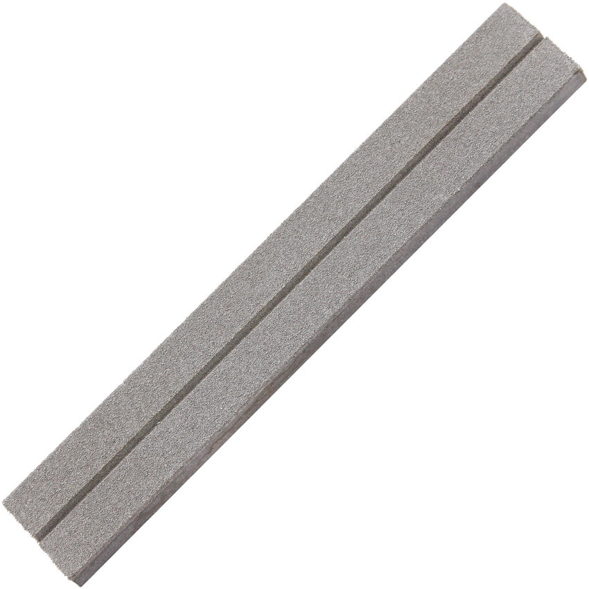 Dimensions: 6" x 1" x 0.25". Grit: Medium. Groove for fish hooks. Clam packed.