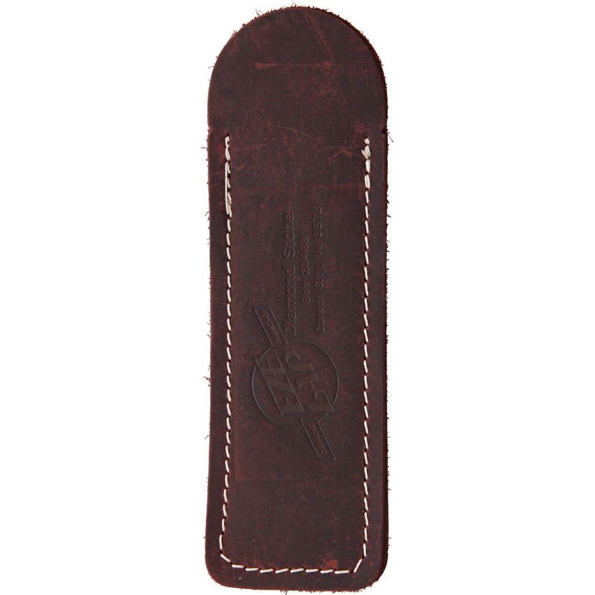Dimensions: 6" x 1" x 0.25". Medium (400) grit. Groove for fishhooks. Brown leather pouch. Clam packed.
