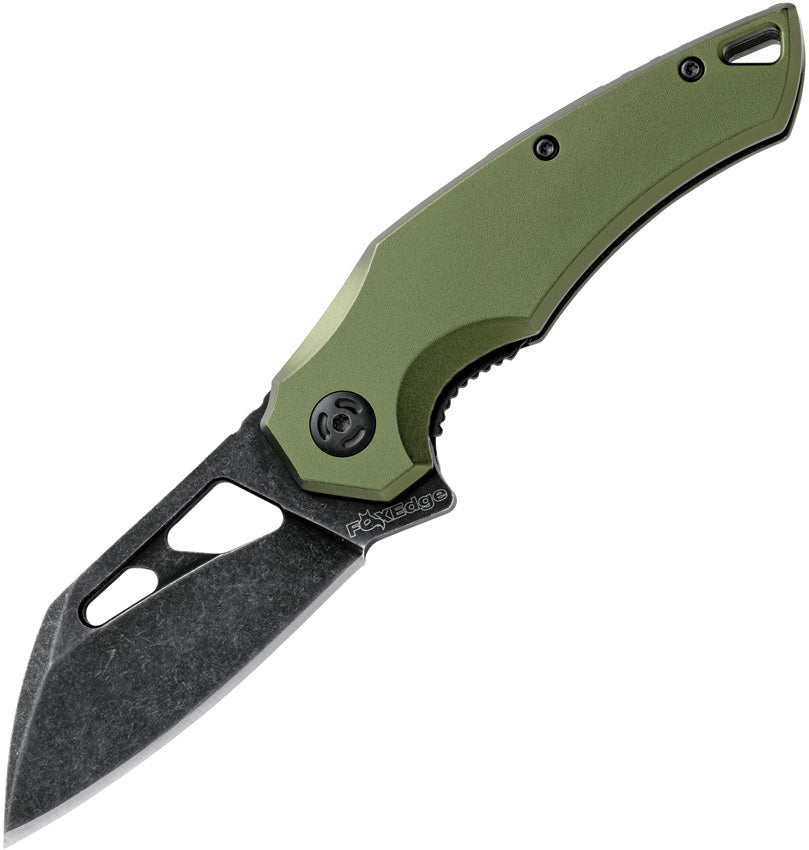 4" (10.16cm) closed. 3" (7.62cm) black stonewash finish 8Cr13MoV stainless blade. Green anodized aluminum handle. Extended tang. Thumb pull. Lanyard hole. Clam packed.