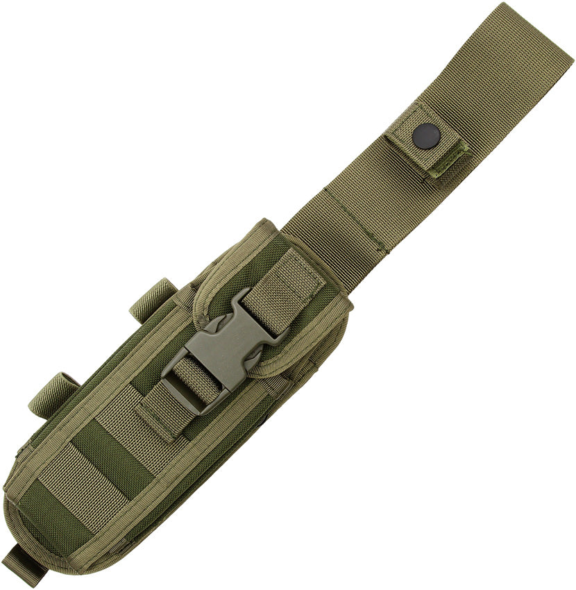 6 3/4" closed lockback. 5 3/8" N690Co Cobalt Vanadium stainless blade with sandblast finish. Green micarta handles. Olive green nylon MOLLE. compatible belt sheath allows the knife to be carried in fixed blade position. Also includes additional sheath to carry knife in the closed position.