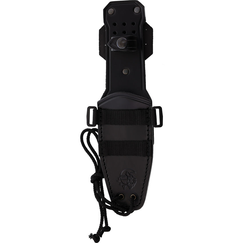 9.88" (25.1cm) overall. 5" (12.7cm) satin finish MV-58 stainless blade. Black micarta handle. Full, extended tang. Lanyard hole. Black leather belt sheath.