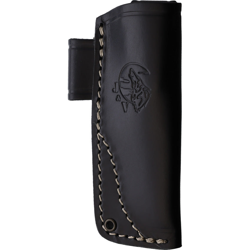 6.5" (16.51cm) overall. 3" (7.62cm) satin finish MV-58 stainless blade. Black sculpted micarta handle. Full, extended tang. Lanyard hole. Red liners. Black leather belt sheath. Boxed.