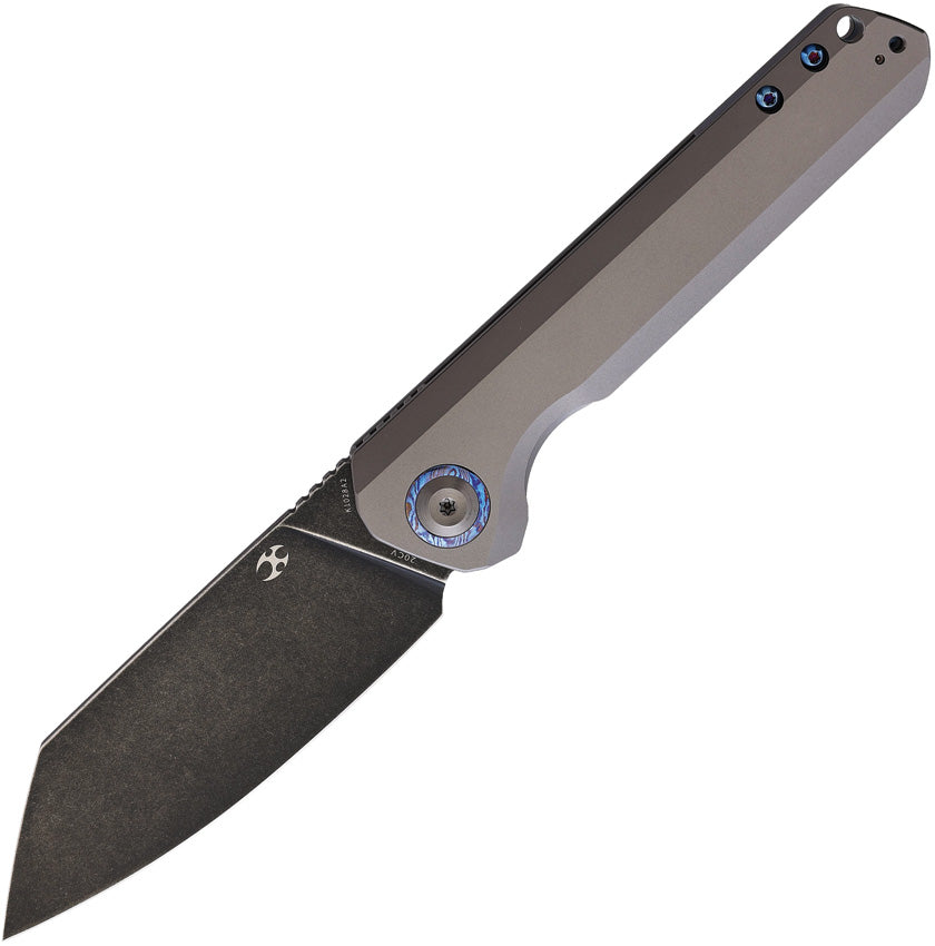 4.75" (12.07cm) closed. 3.75" (9.53cm) black TiCN coated CPM-20CV stainless blade. Gray anodized titanium handle. Lanyard hole. Extended tang. Timascus pocket clip. Black nylon pouch. Boxed.
