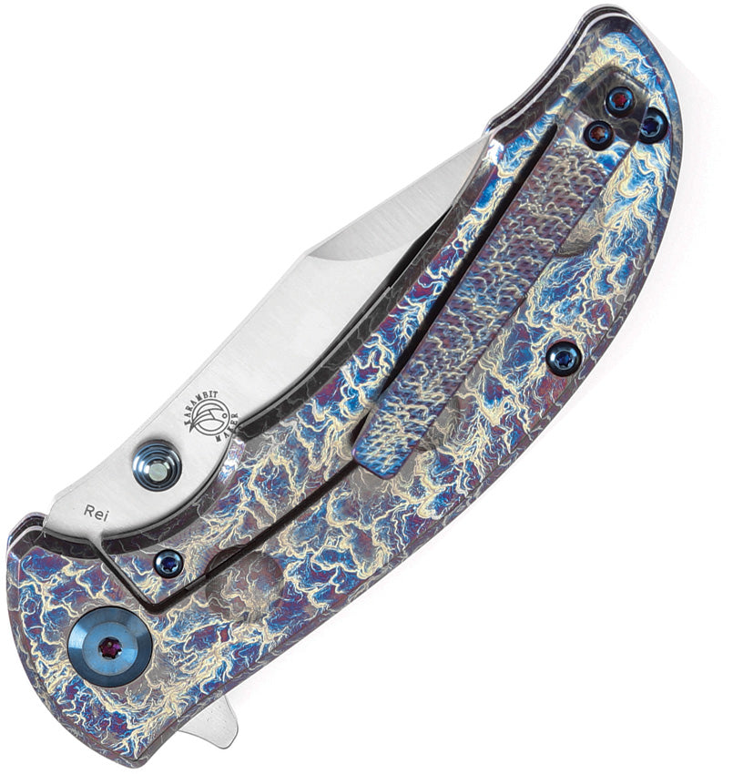 4.25" (10.8cm) closed. 3.25" (8.26cm) satin finish CPM-20CV stainless blade. Lightning strike anodized titanium handle. Extended tang. Thumb stud. Pocket clip. Black nylon pouch. Boxed.