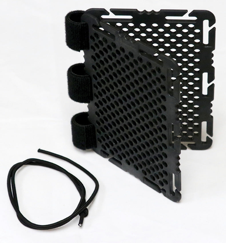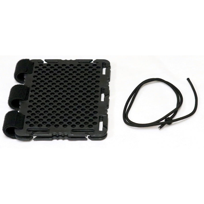 Dimensions: 5.63" x 5". Utilizes (2) Tac-AMP's joined together via one-wrap hook and loop, and includes 24 inches of shock cord. Users can mount items to both sides of a single Tac-AMP, or utilize two plates in a portfolio style booklet, easily mounting hard goods to the outside, and conveniently securing softer goods in between the two plates. The voids left in the plates are perfect size for Chicago posts and screws, but also serve as a grid for weaving shock-cord through as well. Color: Black. Bulk packed.