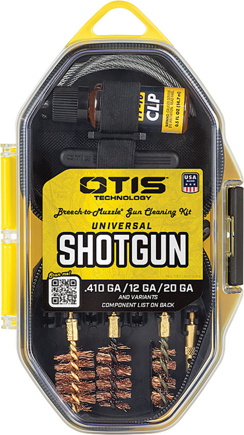 Includes: (10) 3" patches; Slotted tip; Small and large patch savers; Bore brushes with size marked on stem; 40" aircraft grade Memory-Flex cable; Large obstruction remover; T-handle; Chamber flag; 0.5 fl oz Shooter's Choice FP-10 Lubricant Elite CLP. For 12/10 gauge, 20 gauge and .410 gauge shotguns. Hardside carrying case.