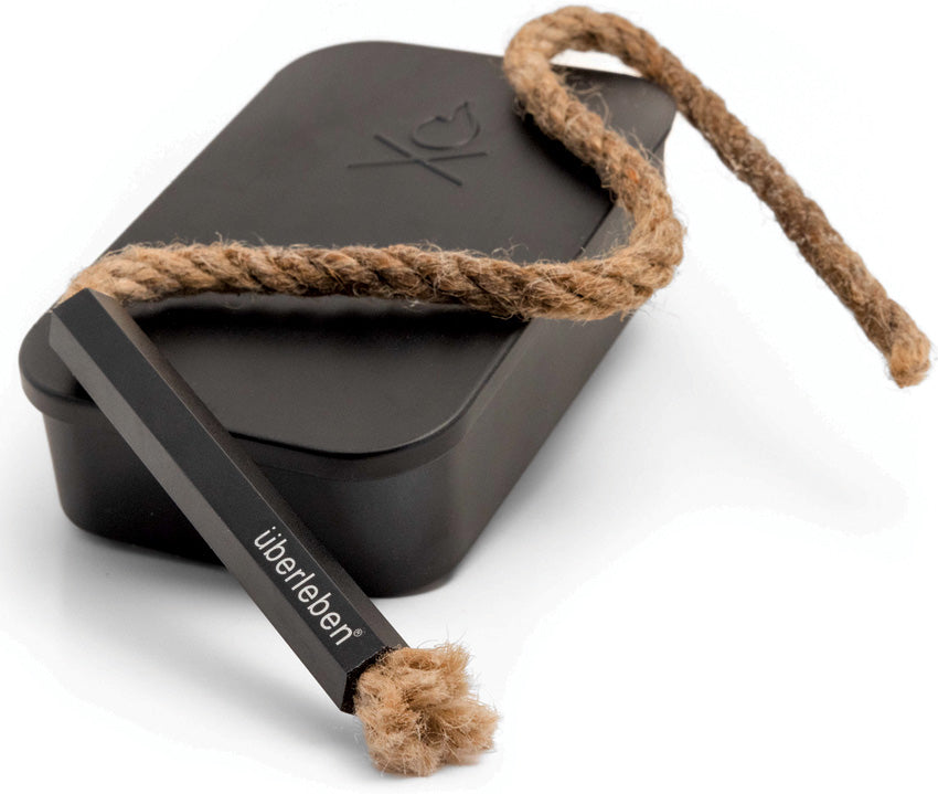 Weatherproof paraffin-wax infused hemp wick (0.23" x 13"). Aluminum sleeve doubles as a micro pocket bellow. Includes hemp wick; anodized aluminum sleeve; and aluminum slider box. Gift tin.