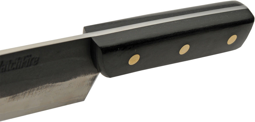 11.5" (29.21cm) overall. 7" (17.78cm) 7Cr17MoV stainless blade. Black pakkawood handle. Full tang. Hand forged blade texture. Black canvas belt sheath. Boxed.