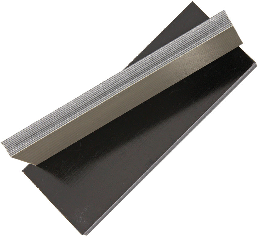 Dimensions: 4" x 1.5" x .25". G10 handle. Black, tan, OD green. Contains two slabs. Item pictured has been ground to show layers. Hang packaged.