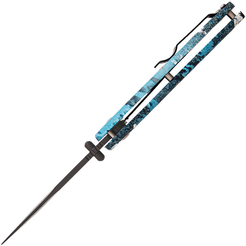Assisted opening. 4.5" (11.43cm) closed. 3.13" (7.95cm) black finish 440 stainless blade. True Timber Rift Zytel handle. Thumb stud. Extended tang. Lanyard hole. Pocket clip. Boxed.