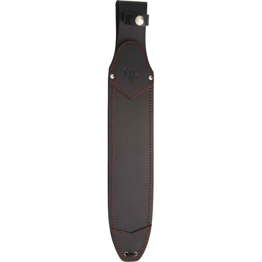 17.75" overall. 12.25" satin finish MoVa stainless drop point blade. Black micarta handle. Full, extended tang. Lanyard hole. Glass breaker. Black leather belt sheath. Boxed.