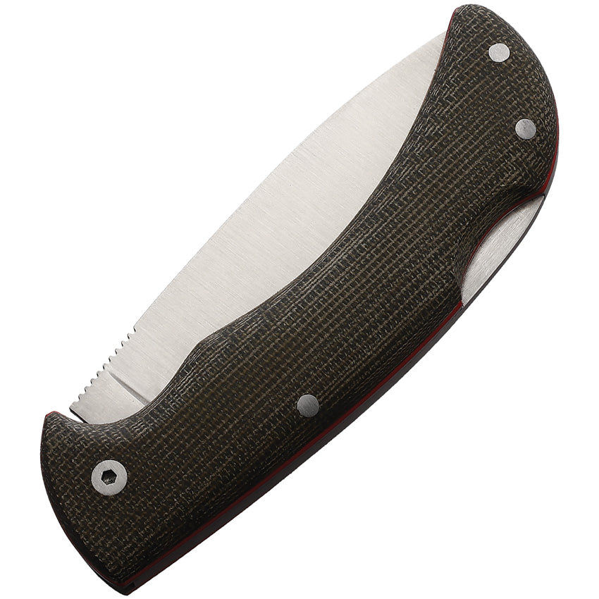 4" (10.16cm) closed. 3" (7.62cm) satin finish Bohler N690 stainless blade. Green canvas micarta handle. Boxed.