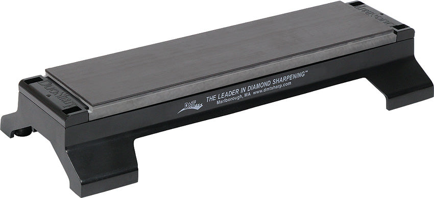 Measures 12 1/4" x 4 5/8" x 2". Includes: DuoBase with MagnaBase Adapter for use with any Dia-Sharp stones. Durable black resin construction with rubber feet. Ergonomic design elevates stone for knuckle clearance.