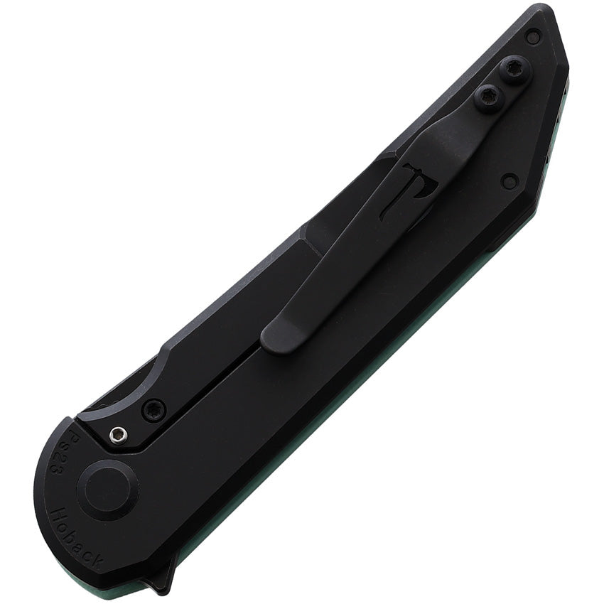 4.63" (11.76cm) closed. 3.25" (8.26cm) DLC coated CPM-20CV stainless tanto blade. Tiffany blue G10 handle with Black DLC coated titanium back handle. Extended tang. Pocket clip. Wooden storage box.