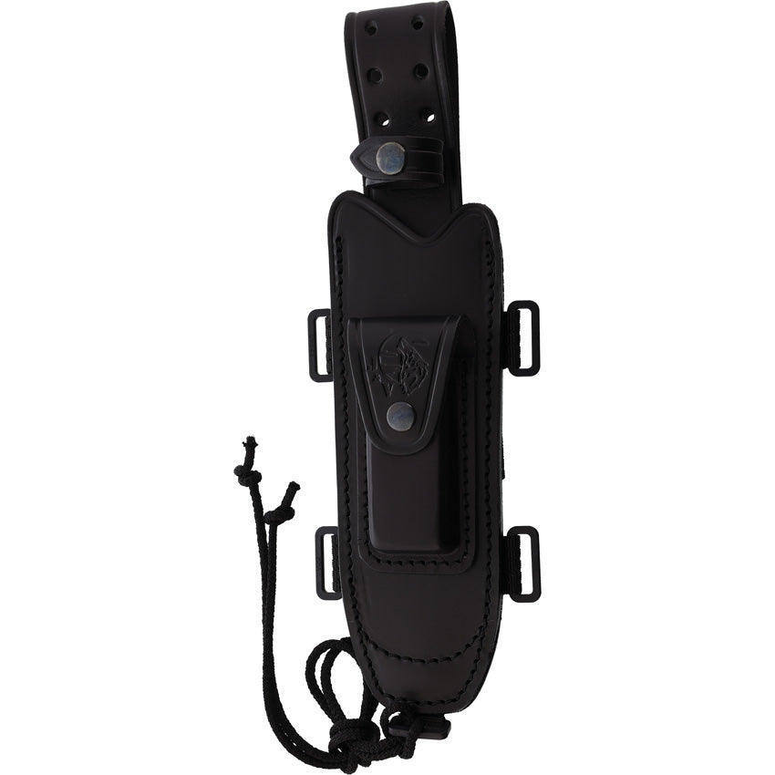 11.25" (28.58cm) overall. 6.88" (17.48cm) satin finish partially serrated MV-58 stainless blade. Black micarta handle. Full, extended tang. Lanyard hole. Black leather belt sheath. Boxed.