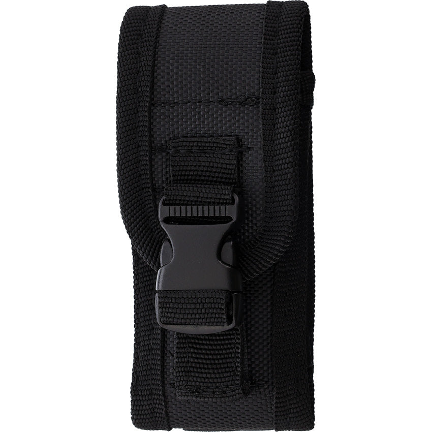 4.5" (11.43cm) closed. 3.38" (8.59cm) satin finish MV-58 stainless blade. Black micarta handle. Lanyard hole. Extended tang. Glass breaker. Red liners. Black nylon belt sheath. Boxed.