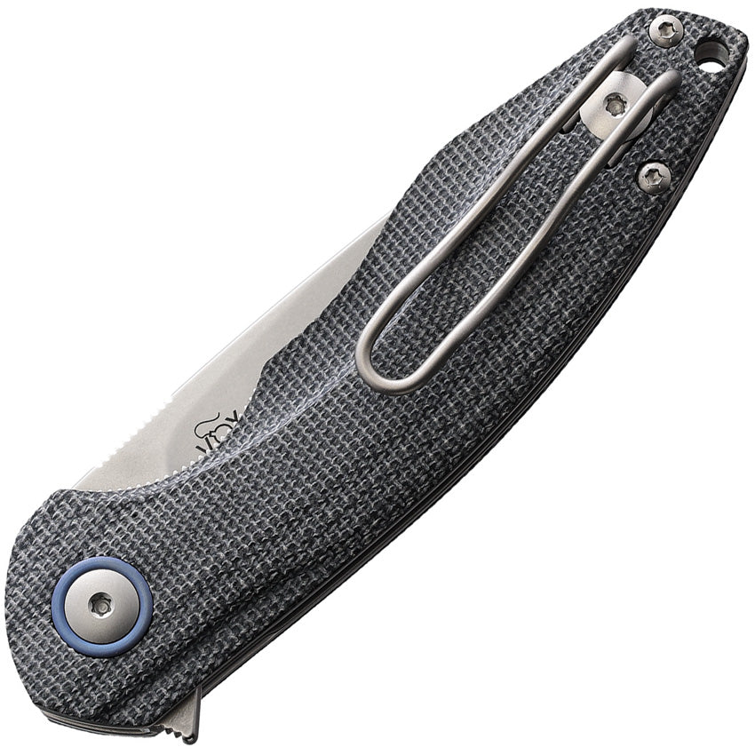 4.13" (10.49cm) closed. 3" (7.62cm) stonewash finish Bohler M390 stainless blade. Black canvas micarta handle. Extended tang. Lanyard hole. Pocket clip. Black nylon zippered storage case. Boxed.