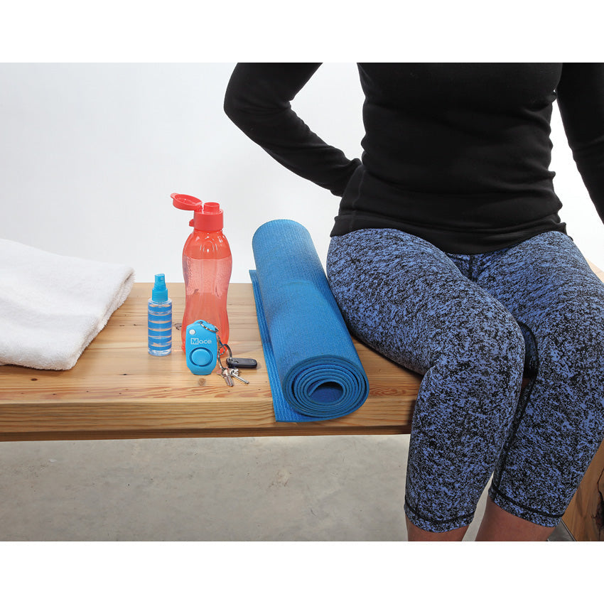 Dimensions: 3" x 1.5" x 0.75". Pressing the front button emits a 130dB alarm. A button on the back deactivates the alarm. Integrated whistle. Keyring attachment. Color: Blue. Clam packed.