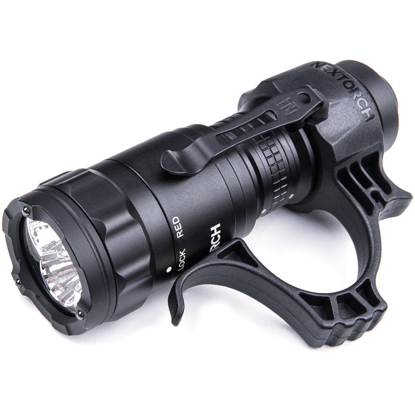 3.75" overall. Strobe. Red and white dual light source. Single-handed operation. Multi-user mode. 160m beam distance. Duty Mode-High (1300 lumens, 1h runtime); Medium (230 lumens, 2h 15m runtime); Low (30 lumens, 20h runtime). Red Mode-High (150 lumens, 3h 30m runtime); Medium (30 lumens, 5h 30m runtime); Low (3 lumens, 50h runtime). Comes with FR-1 tactical ring. Requires (1) 16340 battery (included), or (1) CR123A battery (not included). Aluminum construction. Color: Black. Boxed with hanging tab.