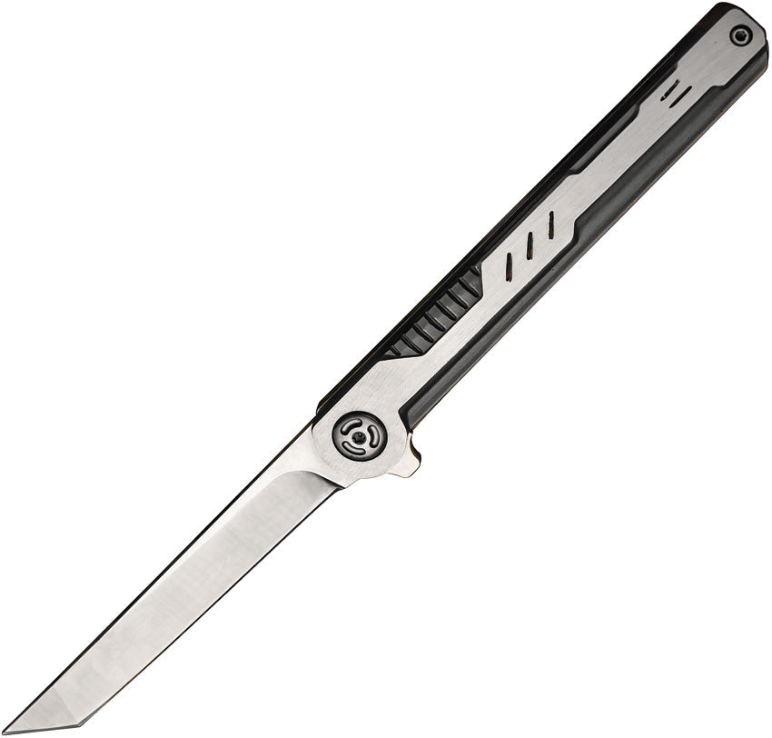 4.5" (11.43cm) closed. 3.5" (8.89cm) satin finish stainless tanto blade. Two-tone finish stainless handle. Extended tang. Pocket clip. Boxed.