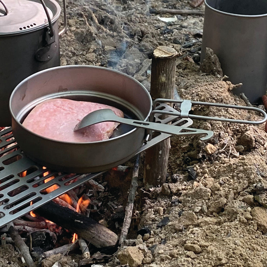 Dimensions: 9.8" x 4.56". Weight: 5oz. High and low temperature resistant. Corrosion resistant. Comes with nylon storage pouch. Titanium construction. Bulk packed.