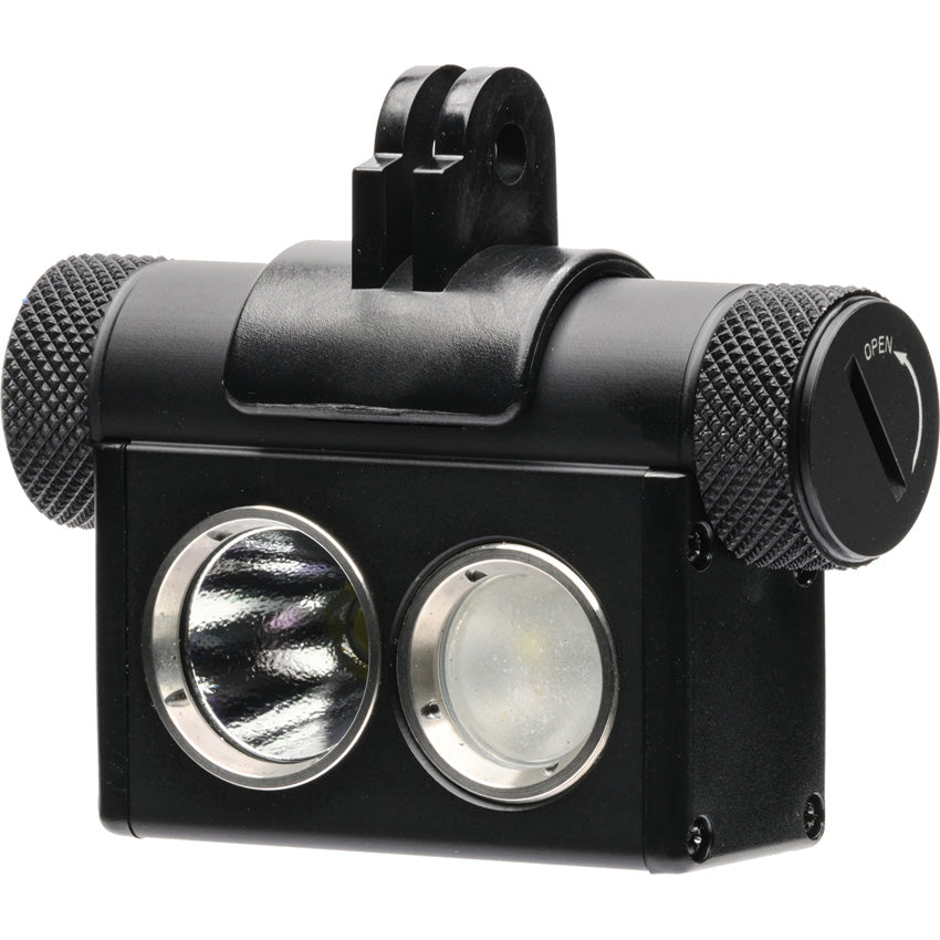 Dimensions: 3.11" x 0.95" x 1.94". Strobe. SOS strobe. Impact resistant. Rechargeable. IPX8 waterproof submersible up to 2 meters under water. CREE XHP50 White LED Focused light. J-Hook buckle mounting system for universal usage. Two switch system. Diffused flood and focused light. Low battery indicator. USB and magnetic charging. Full range of motion. Focused Light Mode: Turbo (2500 lumens, 1.53h runtime); High (1180 lumens, 1.6h runtime); Medium (300 lumens, 4.95h runtime); Low (20 lumens, 2.78 day runtime). CREE XPG2 S3 White LED and CREE XPEBRD red LED flood light. Flood Mode: White (150 lumens, 6.4h runtime); Red output (625nm, 7h runtime); IR Output (850nm, 9.75h runtime). Diffused/flood light modes: white light, red light and IR light. Includes: Headstrap with J-Hook buckle and locking screw, Spare O-rings, and Magnetic USB charging cable. Requires (1) 18650 battery (included). Hardside carrying case.