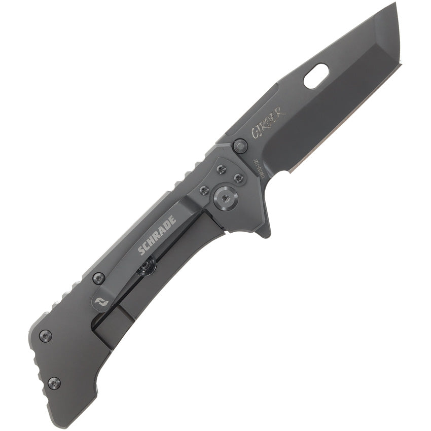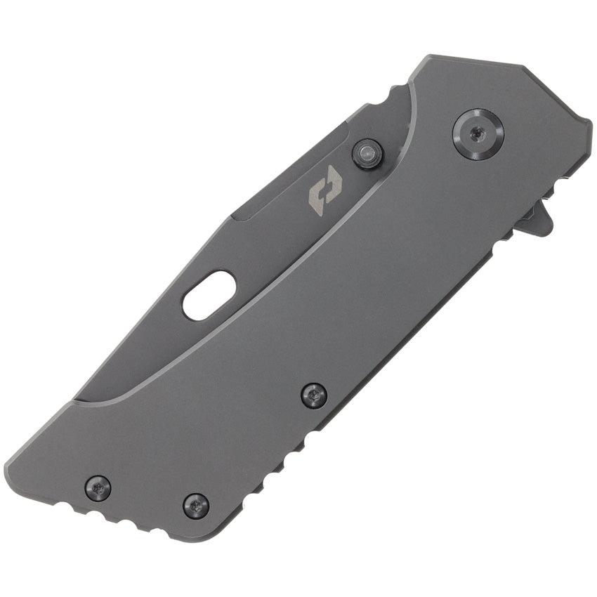 5" (12.7cm) closed. 3.5" (8.89cm) gray TiNi coated AUS-8 stainless tanto blade. Gray stainless handle. Extended tang. Thumb stud. Pocket clip. Clam packed.