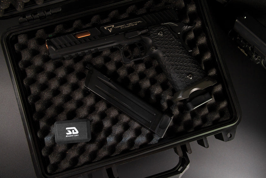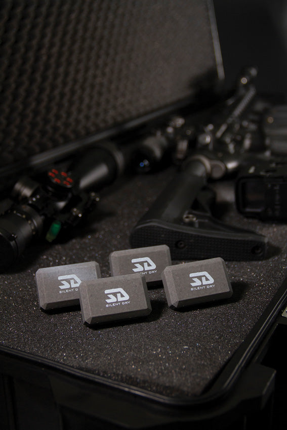 Dimensions: 2" x 1.3" x .78". Ideal for pistol cases 30L or less. Set of 4 stones. Renewable. Nano Porous Silicon material. Boxed with hanging tab.