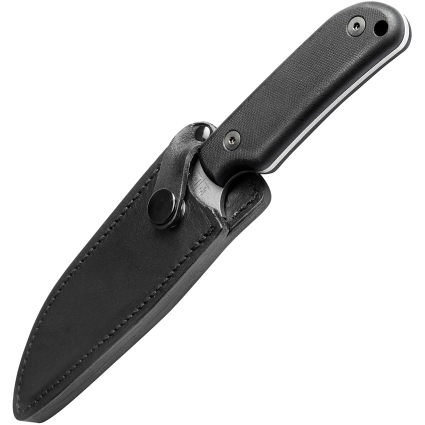 8.5" (21.59cm) overall. 4.5" (11.43cm) stonewash finish ALENOX blade. Black smooth G10 handle. Full tang. Lanyard hole. Black Kydex sheath. Storage case.