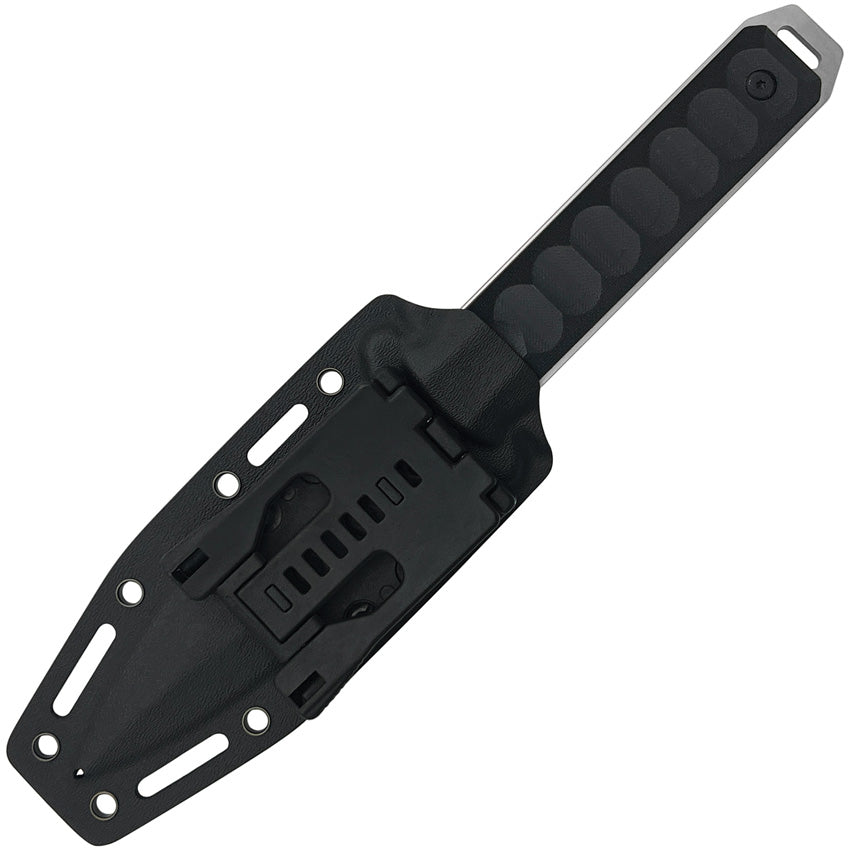 11" (27.94cm) overall. 5.5" (13.97cm) satin finish D2 tool steel spear point blade. Black G10 handle. Full, extended tang. Lanyard hole. Black Kydex belt sheath. Boxed.