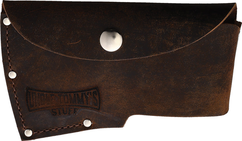15" overall. 5" carbon steel axe head with 2.75" cutting edge. American Hickory handle. Lanyard hole. Includes: Snow & Neally Outdoorsman's Axe; Uncle Tommy's Stuff in metal tin; Lansky The Puck sharpening stone. 1.25 lb axe head. Brown leather belt sheath. Boxed.