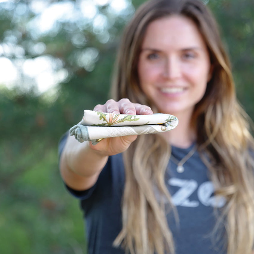 Dimensions: 21" x 21". Made from Wazoo Survival Bandana. Water resistant 10oz waxed Army Duck cotton canvas. Heavy duty brass grommets in each corner. Herringbone grosgrain ribbon along border. Bulk packed.